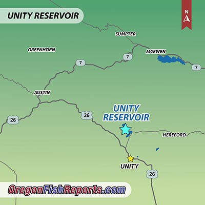 Unity Reservoir is almost full, and this spring anglers have been successful catching 16 to 17-inch rainbow trout. Anglers have been successful fishing both from shore and from boats. Fishing will likely be best at Unity Reservoir over the next couple of months while the reservoir has a good amount of water in it.